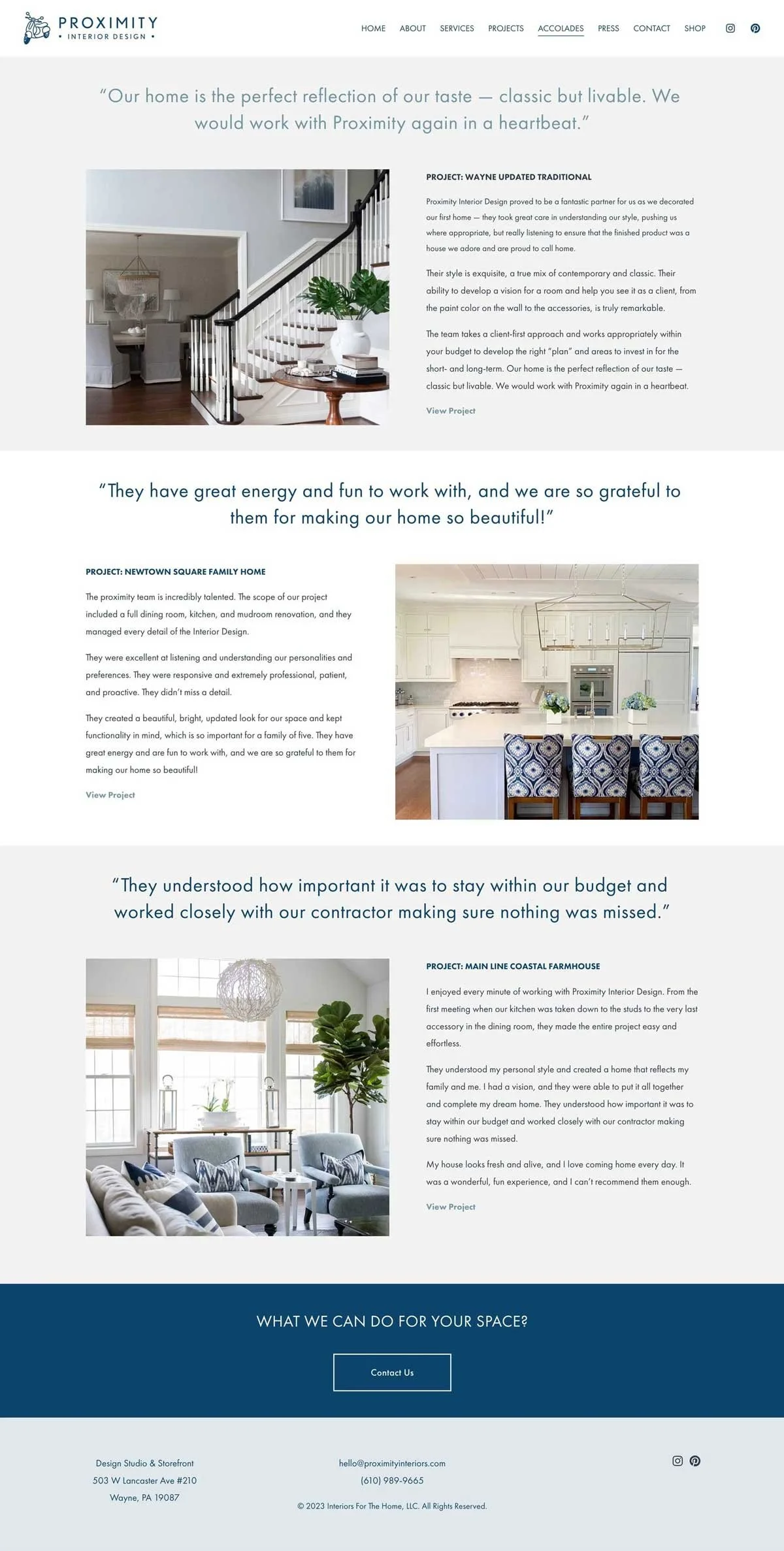 Proximity Interior Design offers interior design services in Philadelphia, the Main Line, New Jersey, and Florida. Their website showcases their expertise in coastal living and modern luxury, transforming spaces into elegant and functional environments.